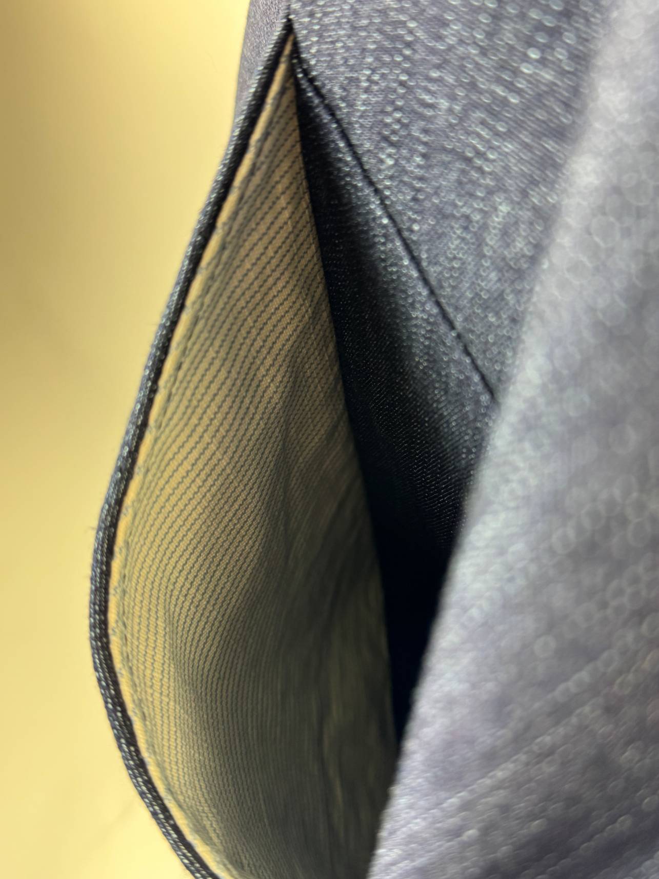 - Points de renfort: aux côtés par une surpiqure à 5 mm, et en haut des poches