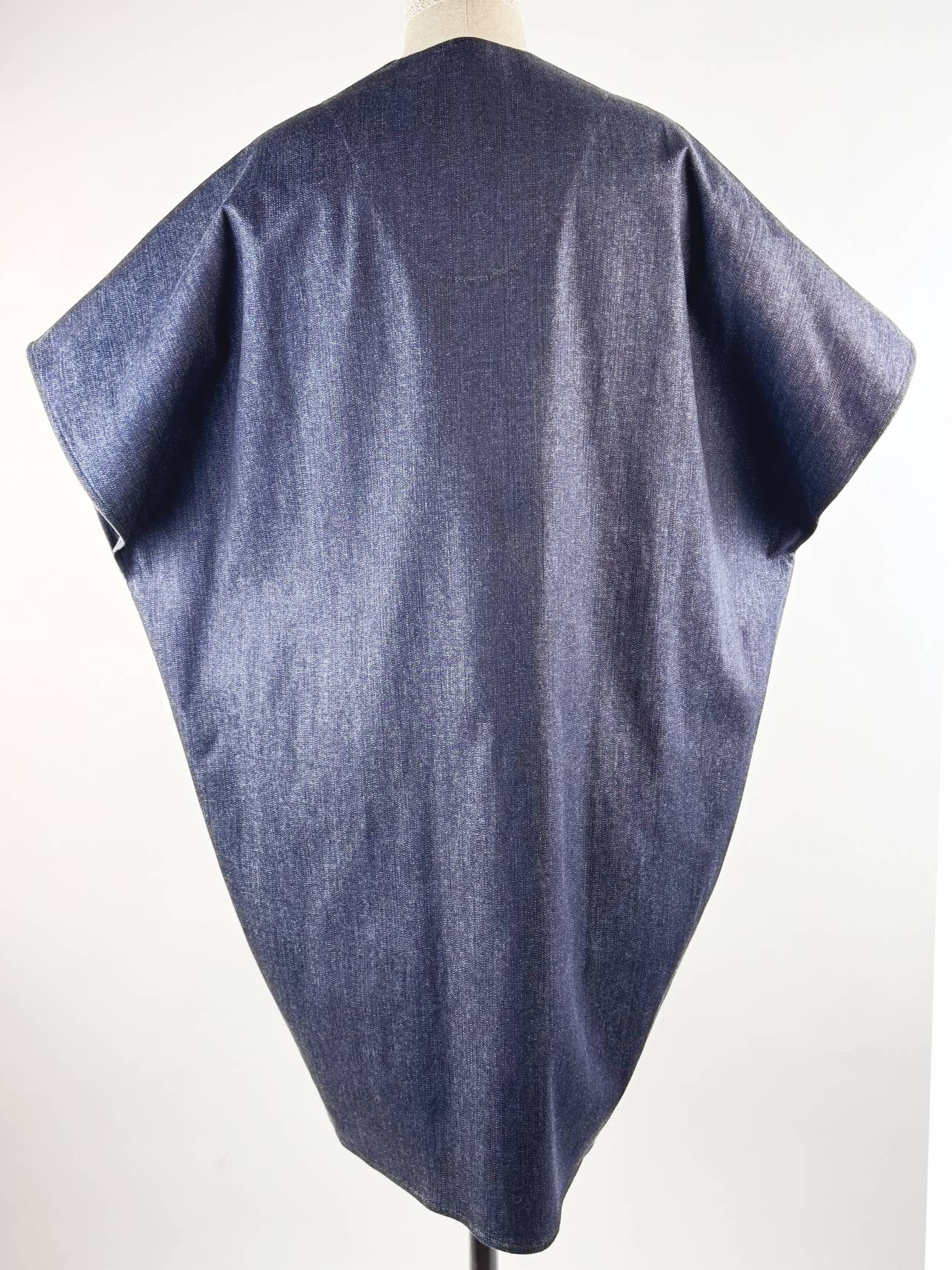 La robe Lison est une robe chasuble ample en jean bleu marine, au tombé fluide et à la coupe ample trapèze. Son encolure en V apporte élégance et modernité, tandis que sa silhouette oversize garantit confort et liberté de mouvement: