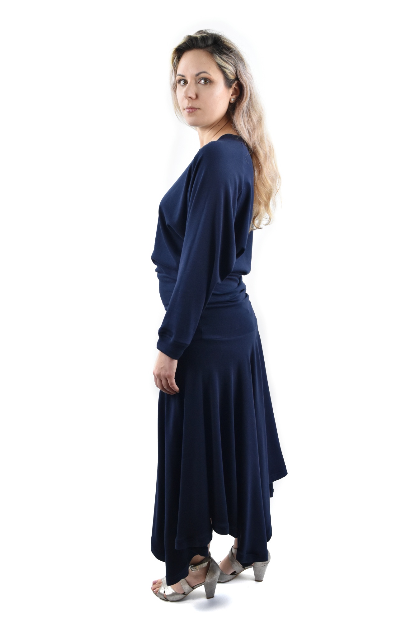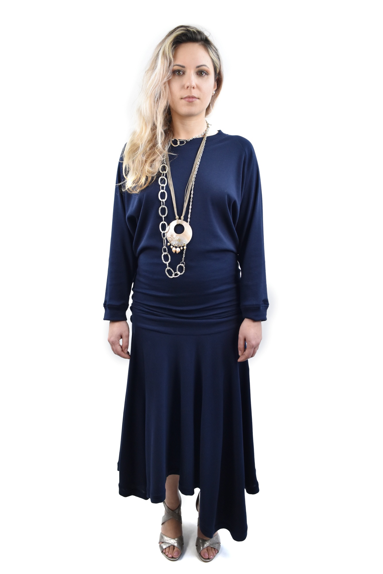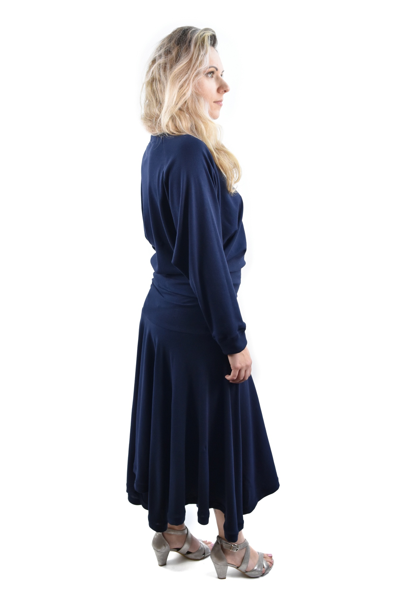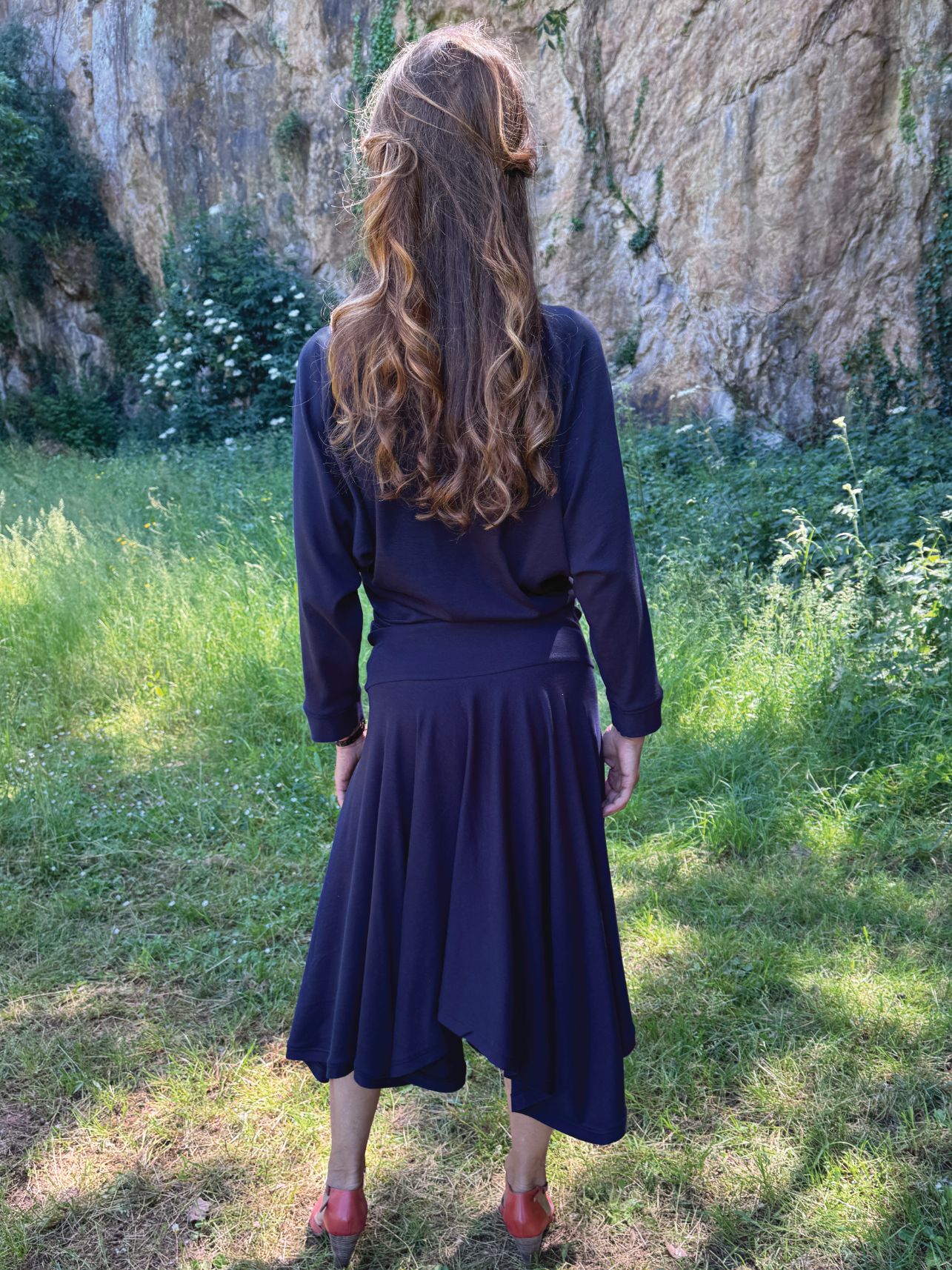 La robe Ginou est la dernière née de la ligne Gina: un haut chauve-souris associé à une jupe sans couture.