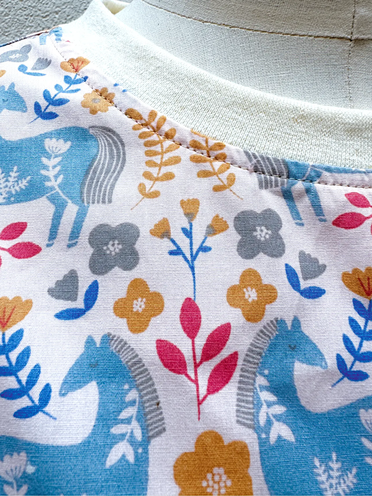 - Finition par bords cotes surpiqués à 5mm à l’encolure