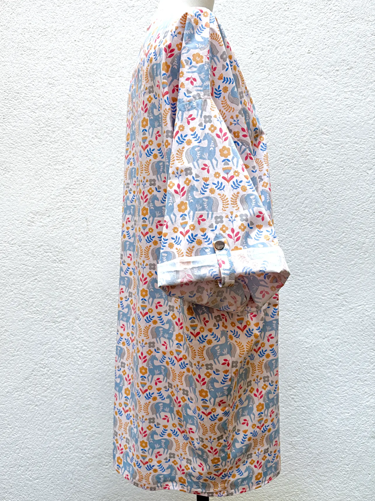 - Finition par ourlets en bas de manche et en bas de robe