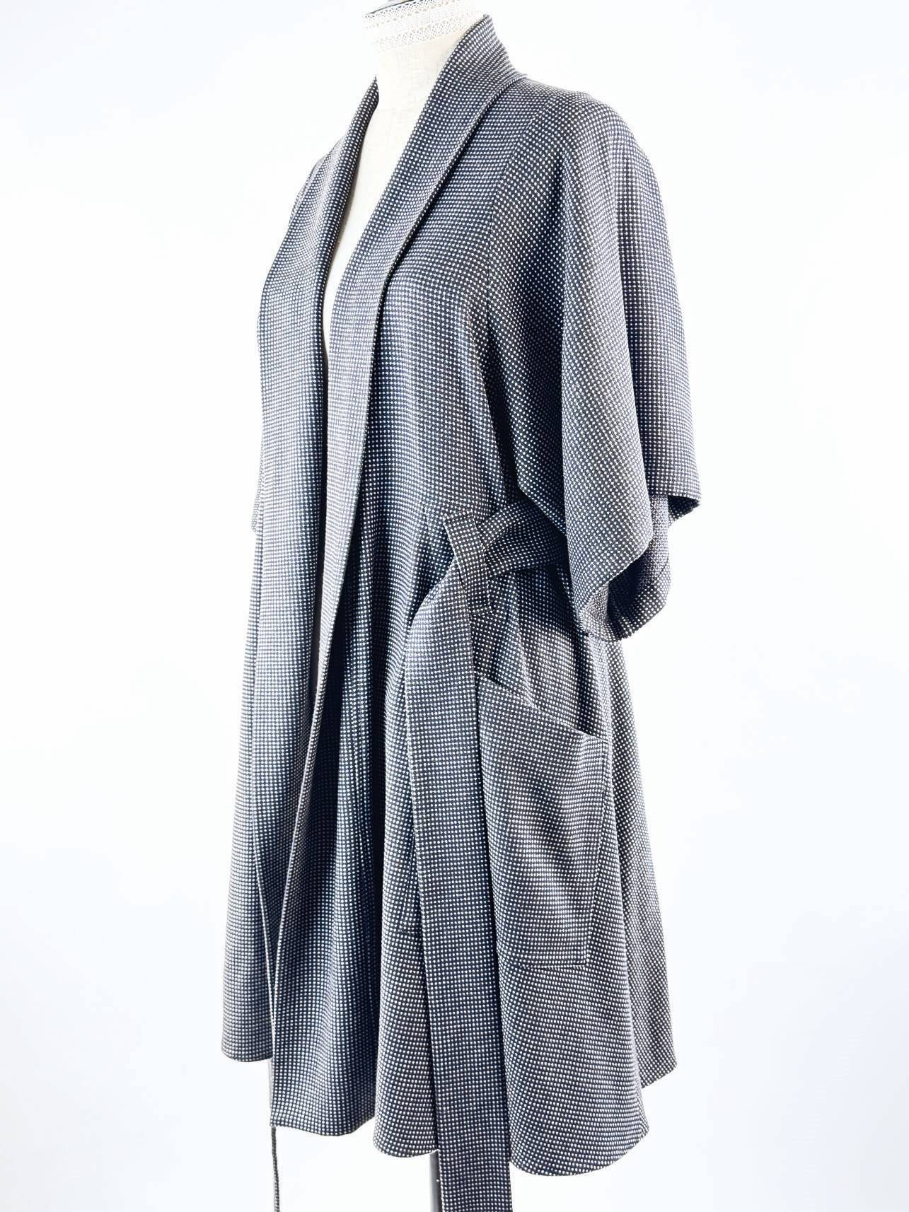 Robe-manteau Primevert réalisée en pièce unique, au design fluide et sculptural. Poches oversize et manches drapées pour une allure à la fois chic et audacieuse: