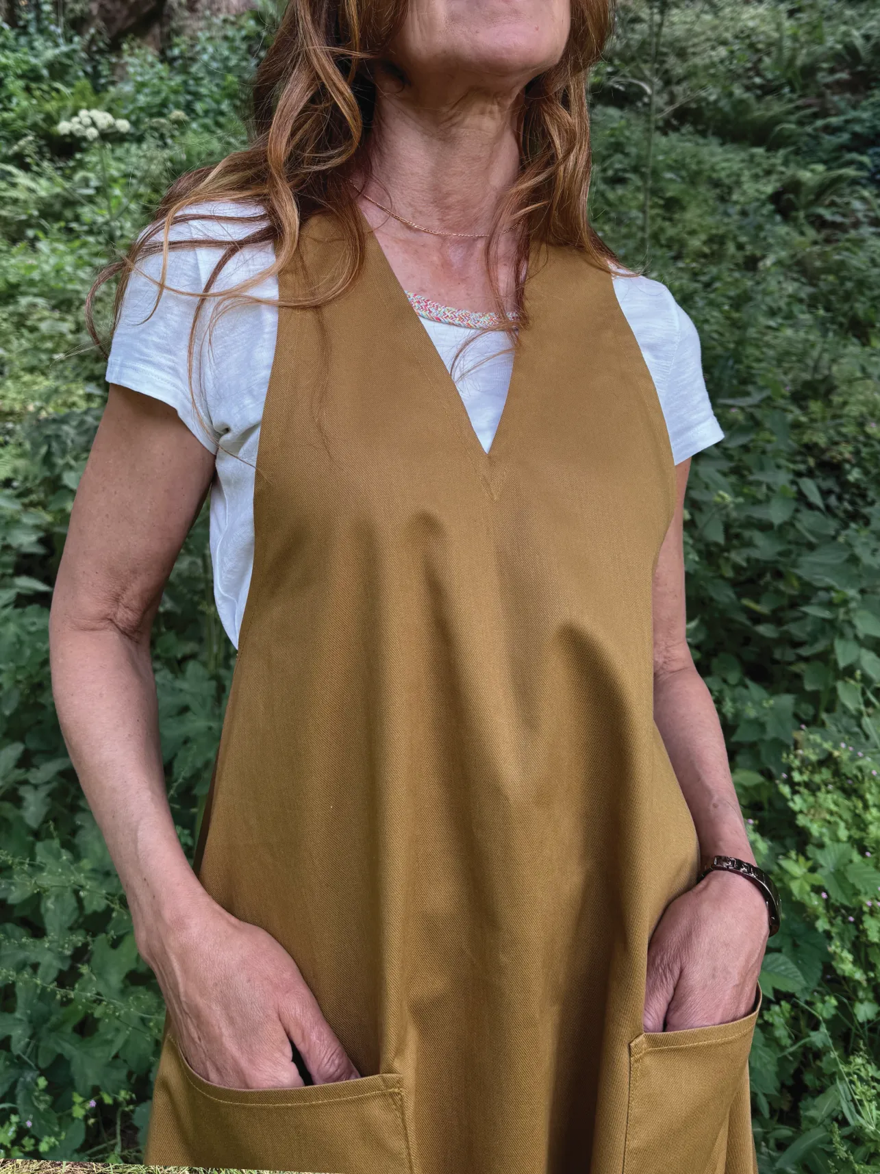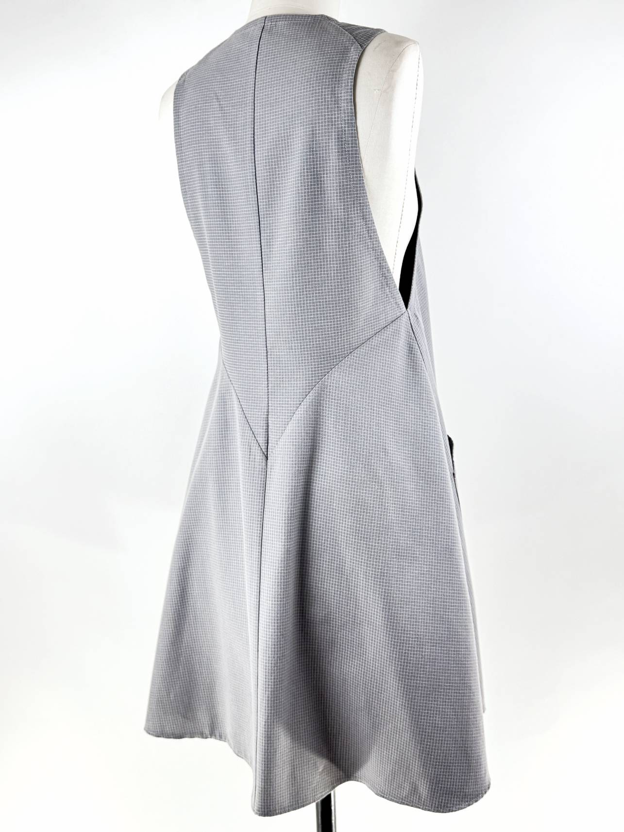 La robe Précieuse, portée par le mannequin est plus courte de 3 cm, à poches moins profondes, dont le volume corporel par ailleurs, est identique