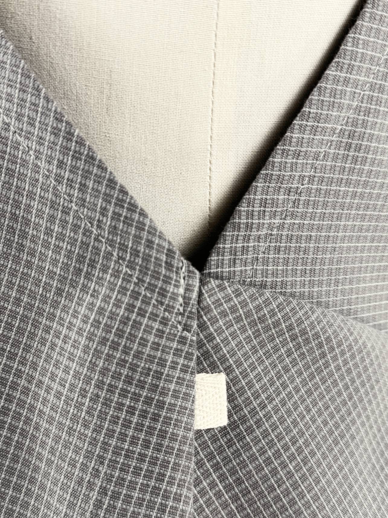 - Biais rabattu surpiqué nervure à l’encolure et aux emmanchures
