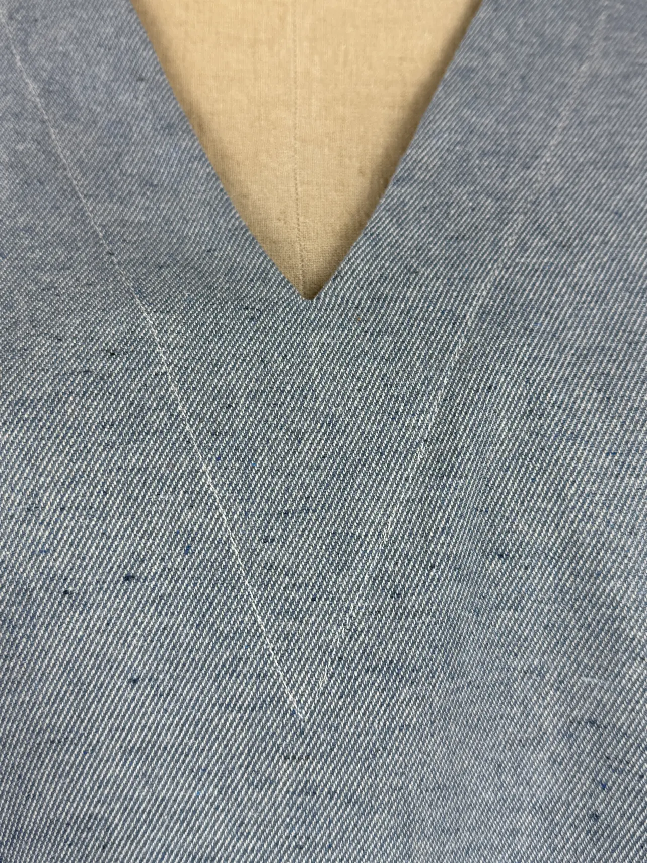 • Biais rabattu surpiqué nervure à l’encolure et aux emmanchures