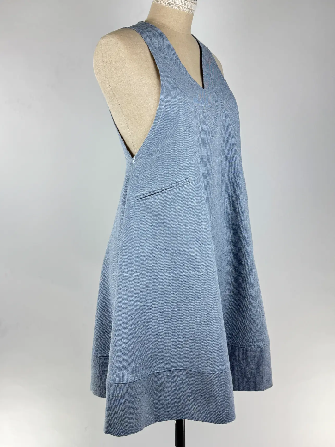La robe chasuble Priscia, en jacquard de gris/beige, parfaite pour un look bohème chic: